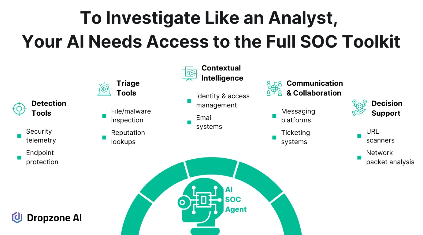 - Tool use is the foundation of real investigations. SOC AI must query SIEMs, pivot across EDR, and validate identity systems, just as analysts do.