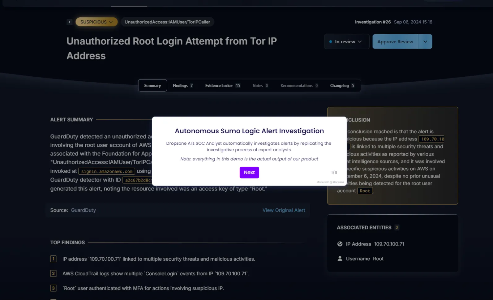 Most integrations take less than 30 minutes to configure. Dropzone AI automatically syncs with security tools to ingest alerts and start investigations, reducing setup time and eliminating the need for extensive IT resources.