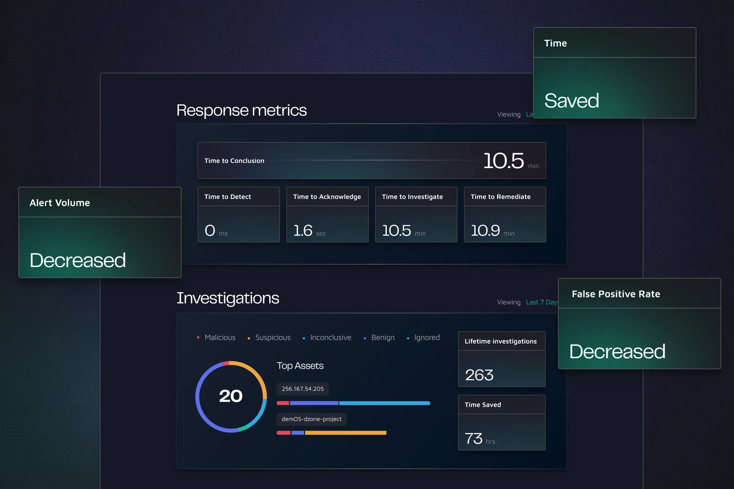 Elite analyst techniques, automated. Investigate 100% of alerts in under 5 minutes. Get the evidence and reasoning your team needs to act with confidence.